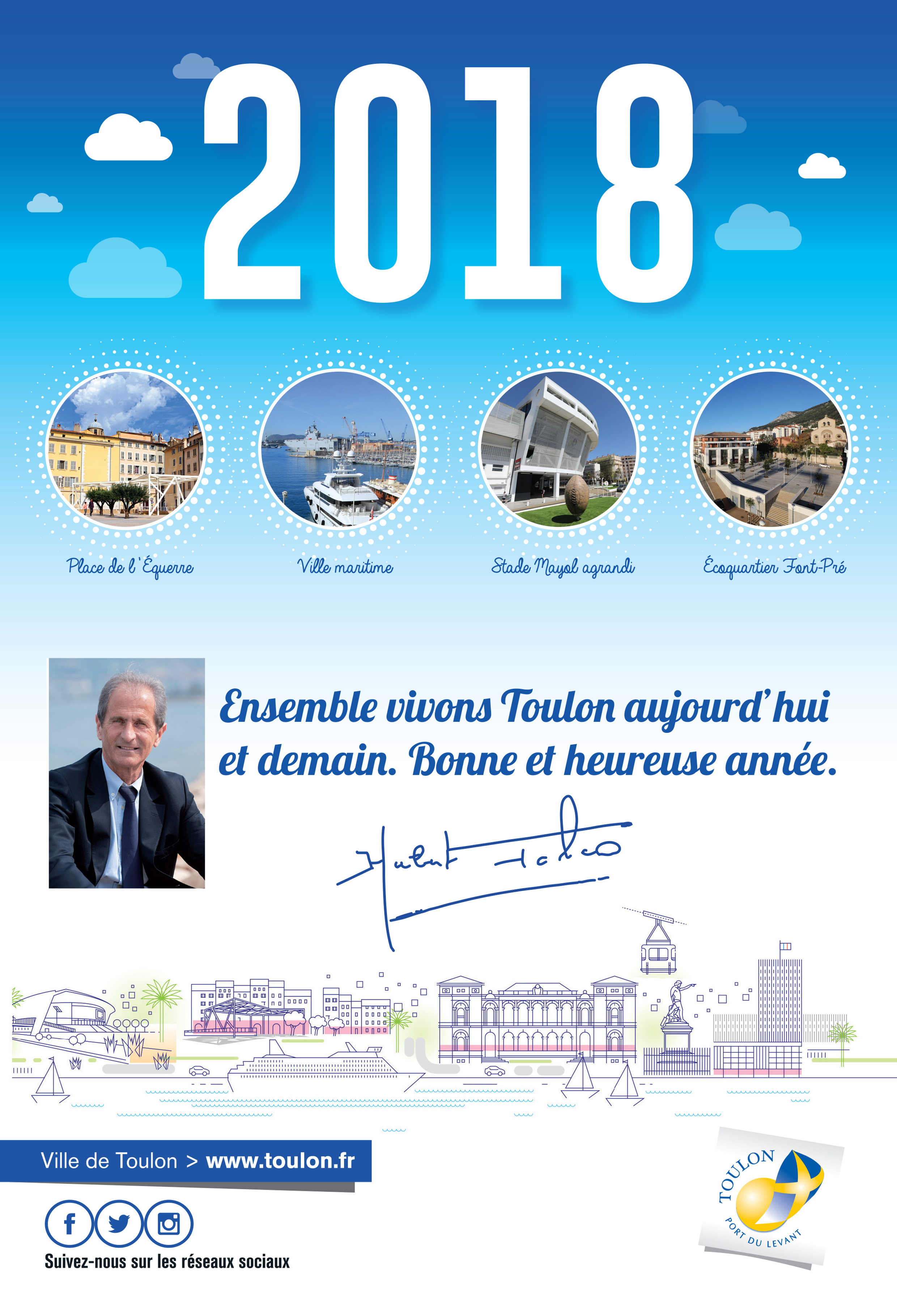 Nous vous transmettons également la carte de vœux de la Ville de Toulon que notre Maire, Hubert Falco, a souhaité vous adresser à cette occasion :